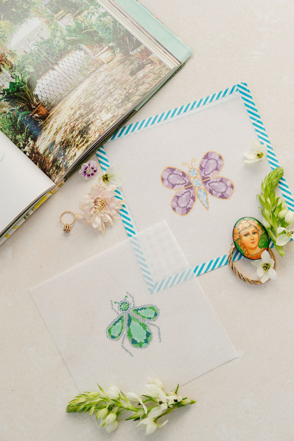 Needlepoint inspired by beach days and cozy nights-made for stitchers who love sunshine, sea breeze and color.